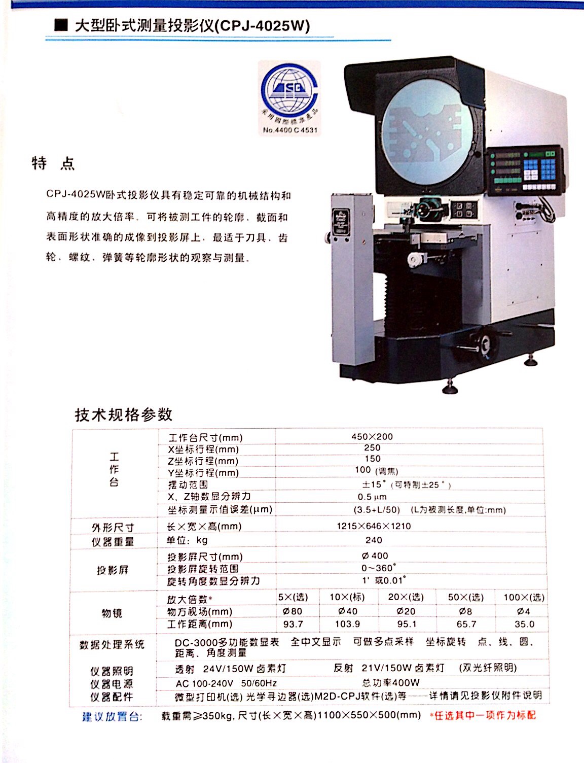你的位置:首頁 > 產(chǎn)品展示 > 幾何測量儀器 > 光學投影儀 > 萬濠投影儀 > 臥式投影儀CPJ-4025W