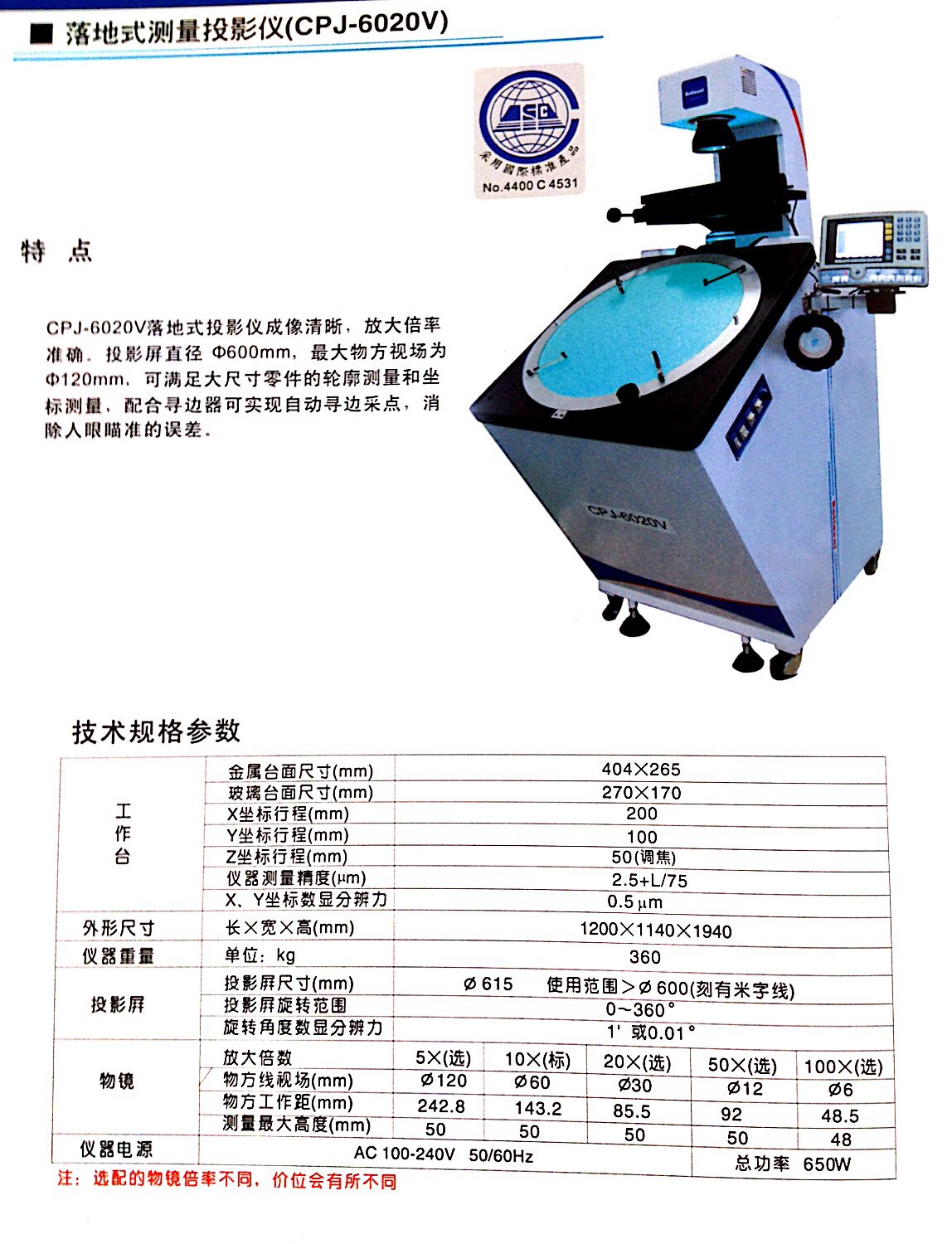 你的位置:首頁 > 產(chǎn)品展示 > 幾何測量儀器 > 光學(xué)投影儀 > 萬濠投影儀 > 落地式測量投影儀CPJ-6020V