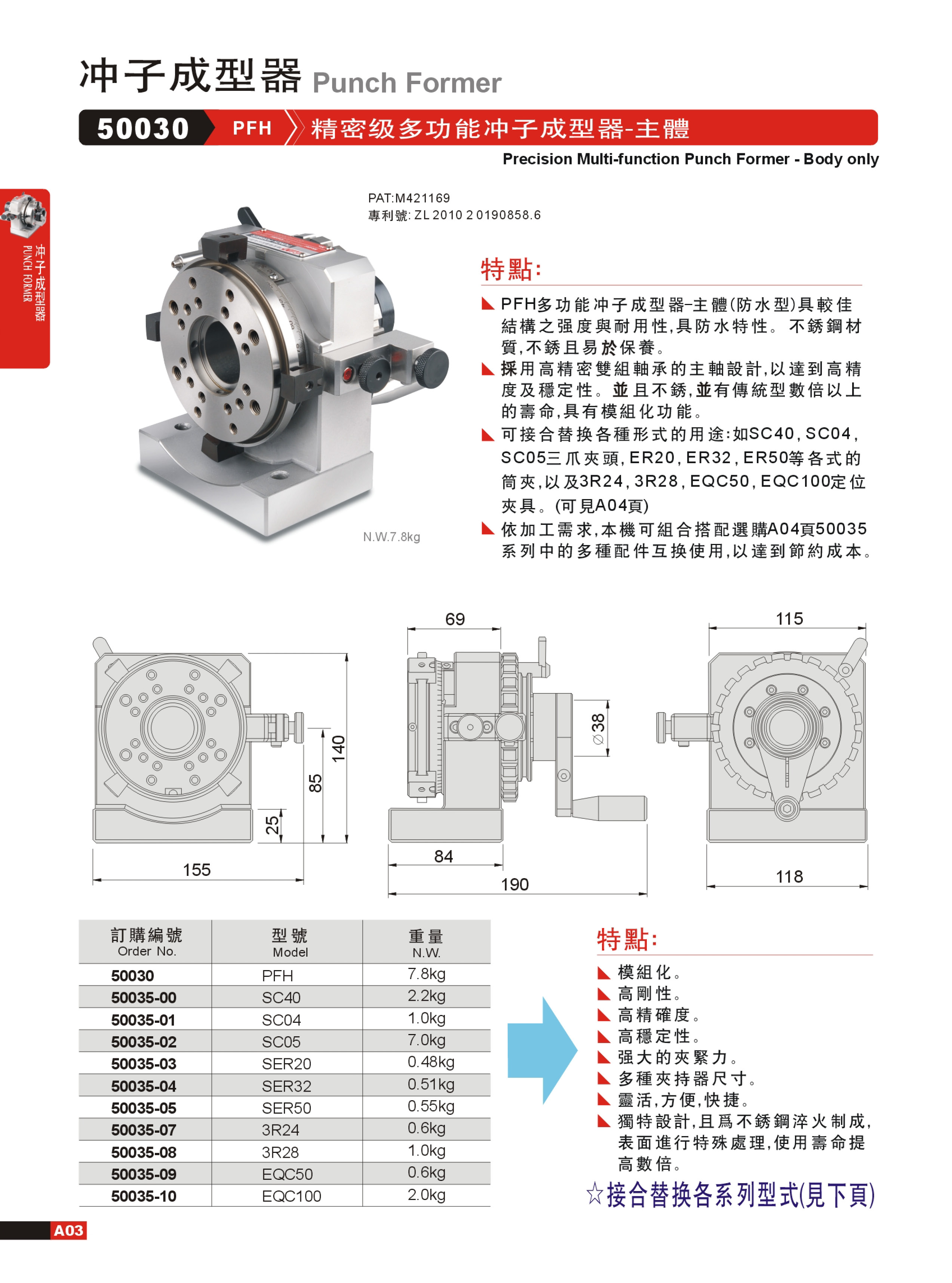 多功能組合式?jīng)_子成型器PFH,密級 PFH350 PFH450 PFH-SC40 PFH-SC04 PFH-SC05 PFH-SER PFB PFC PFA PFD