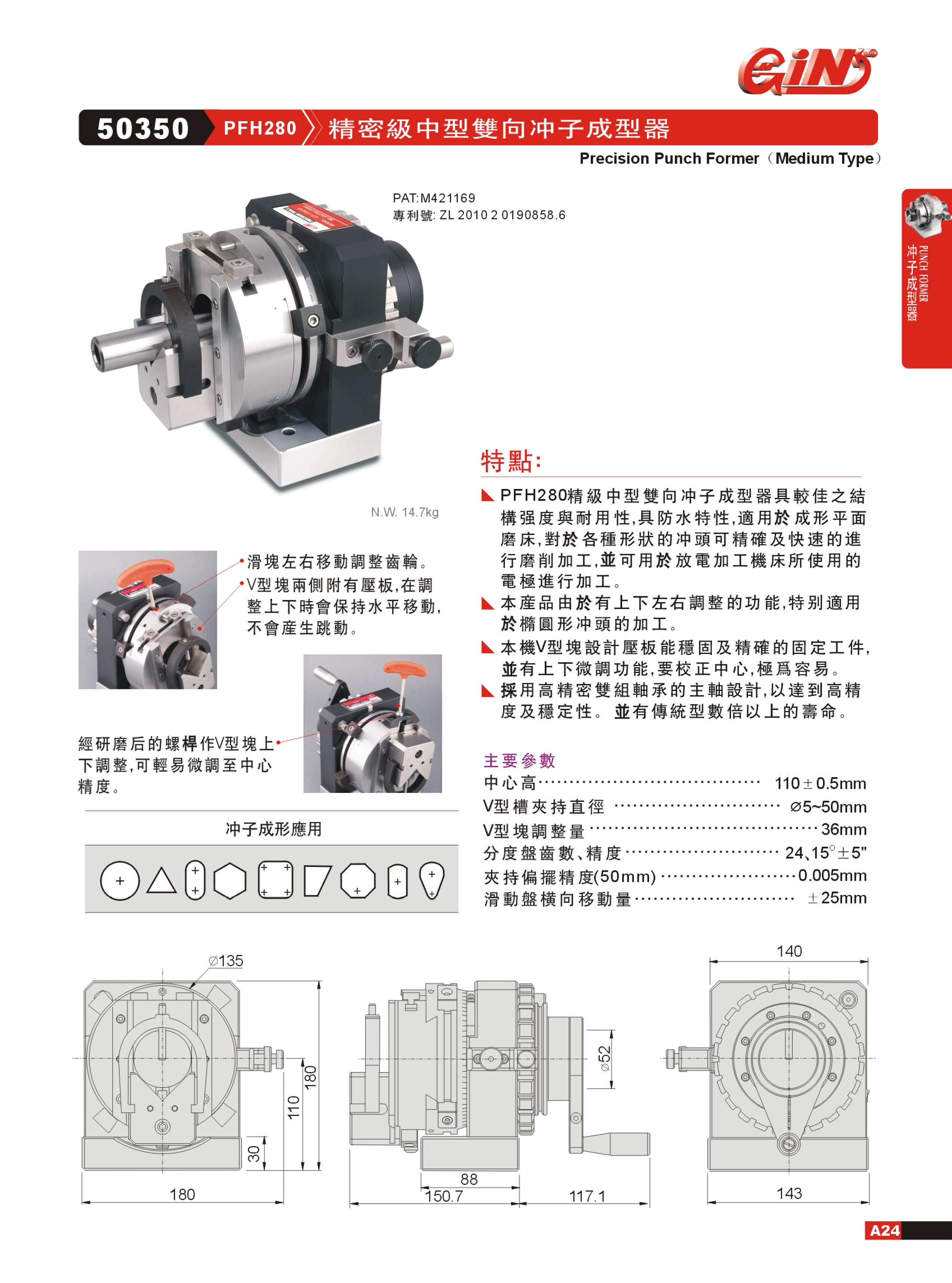 產(chǎn)品詳細(xì)頁PFH280展密級中型雙向沖子成型器50350