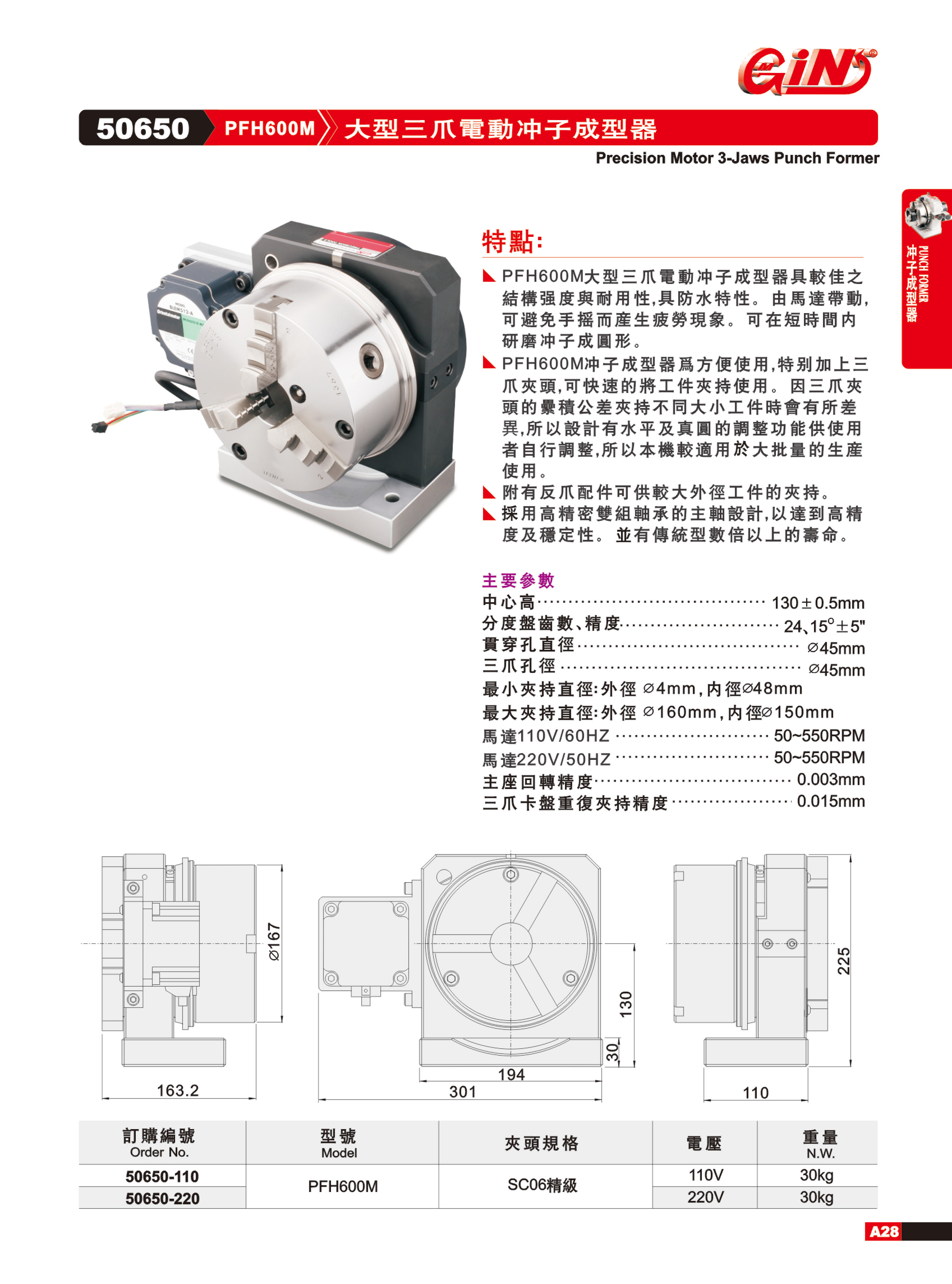 產(chǎn)品詳細(xì)頁(yè)PFH600M展大型電動(dòng)三爪沖子成型器50650