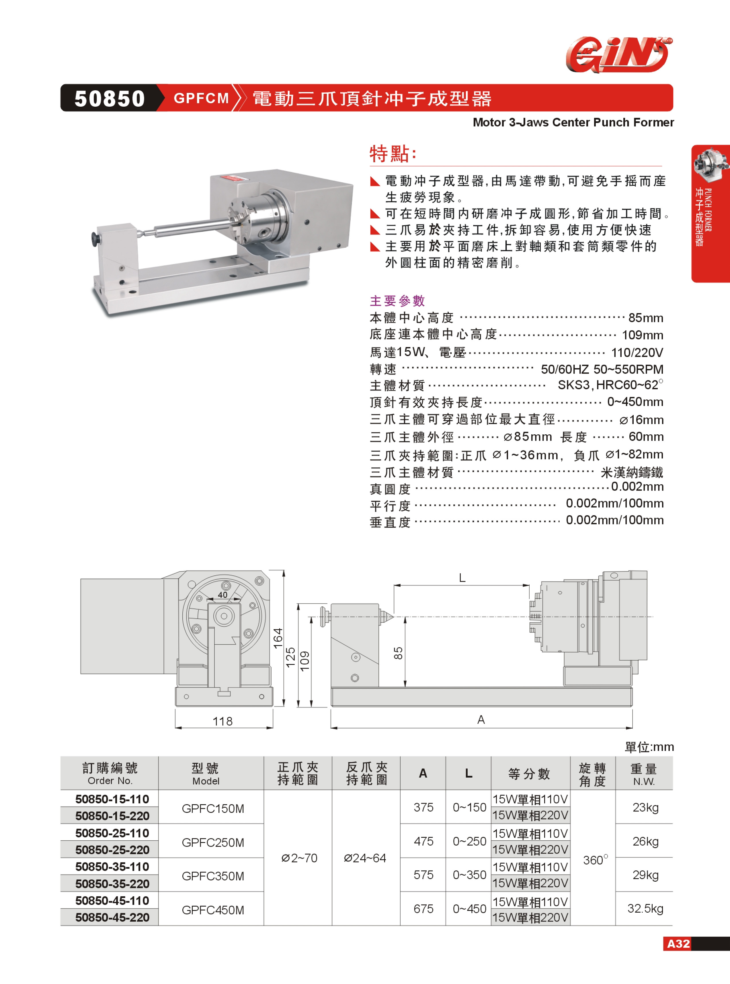 GPFCM展電動三爪頂針沖子成型器50850-15-110/50850-15-220/50850-25-110/50850-25-220/50850-35-110/50850-35-220/50850-45-110/50850-45-220