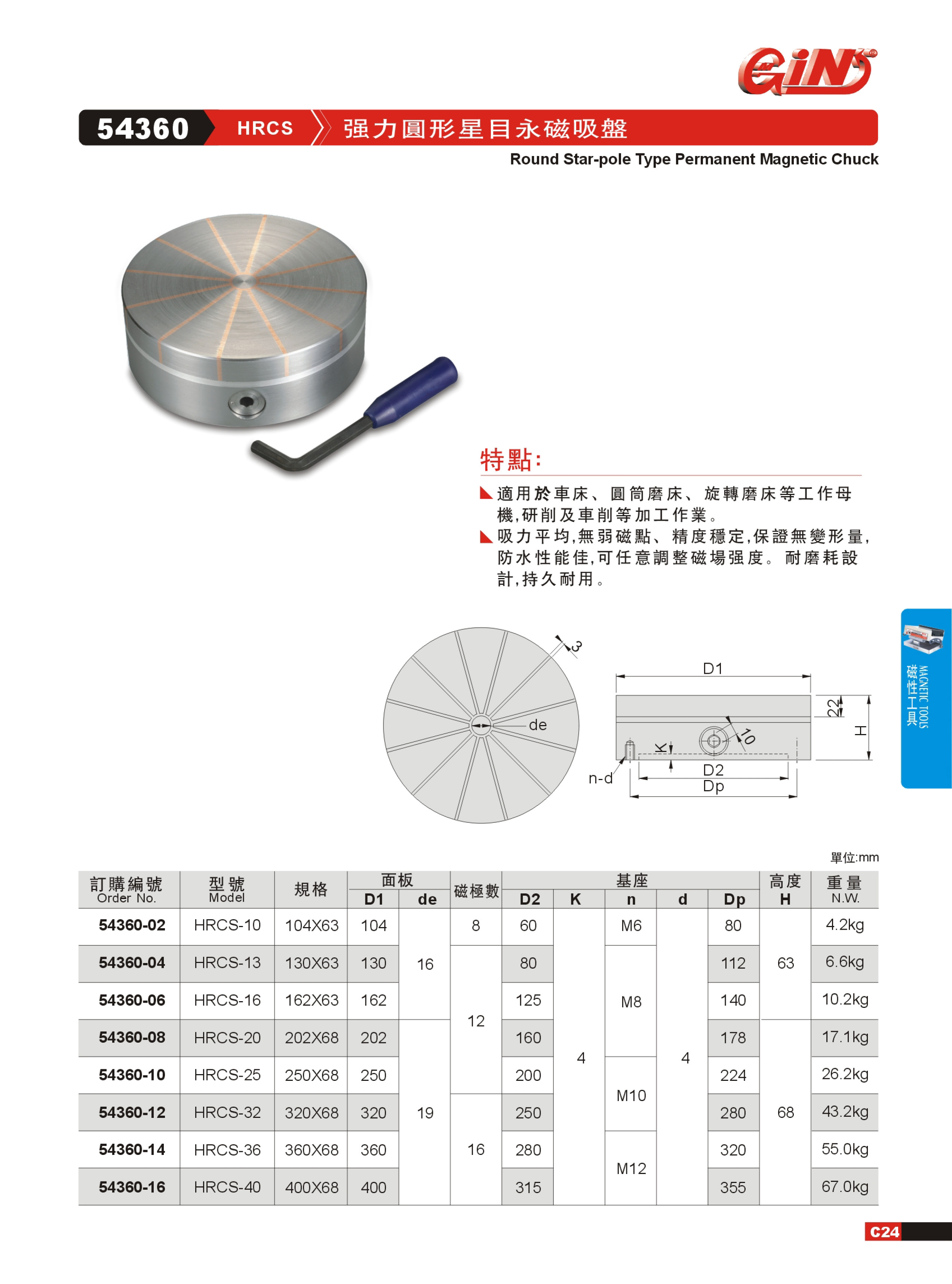 展強力圓形永磁吸盤54360-02/54360-04/54360-08/54360-10/54360-12/54360-14/54360-16