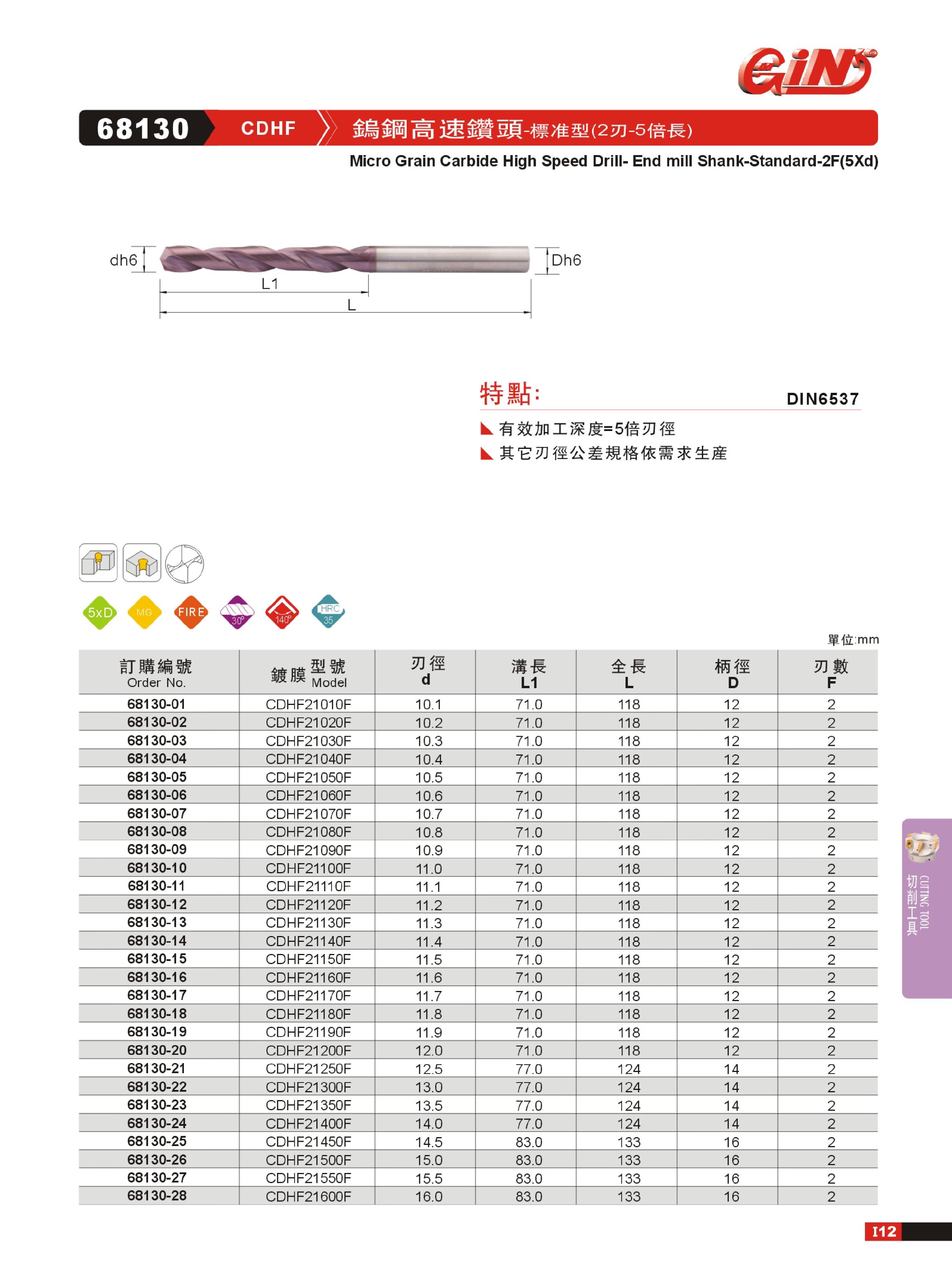 產(chǎn)品詳細(xì)頁中國臺灣展鎢鋼高速鉆頭68130